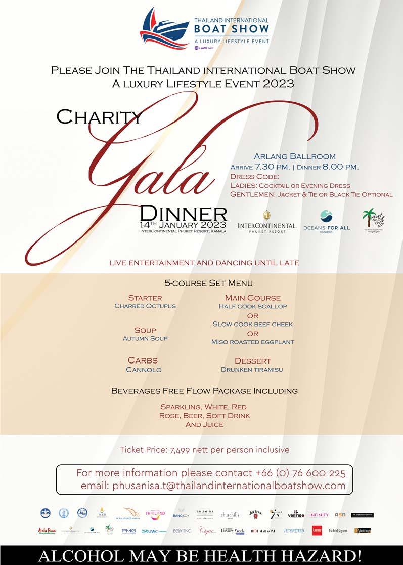 The Thailand International Boat Show A Luxury Lifestyle Event will host a Charity Gala Dinner which will take place at the InterContinental Phuket Resort, Kamala on the evening of Saturday 14th of January 2023. An evening of food, drink and entertainment will make this event a great start to 2023 and booking is essential as space is limited. For more information and to book tickets please contact Phusanisa.t@ thailandinternationalboatshow.com or call +66 (0) 76 600 225