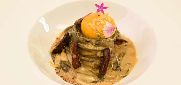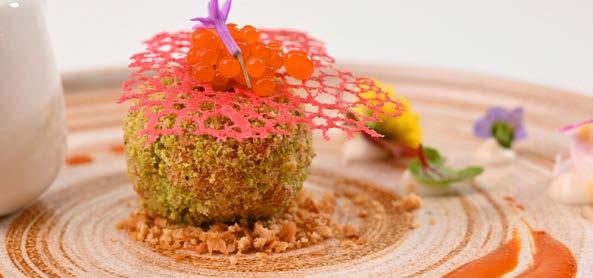вышедшей в финал ных блюд-финалистов фигурируют веганская карбонара в тайском сти ле с яйцами не из яиц; мороженое с протеином из сверчков; раститель ные крокеты с соусом по мотивам пенанг-карри; «дружественное для мозга» карри с имитацией крабо вого мяса на основе грибов и джек фрута (см. фото на этой странице). Фото: futurefoodapec.com
