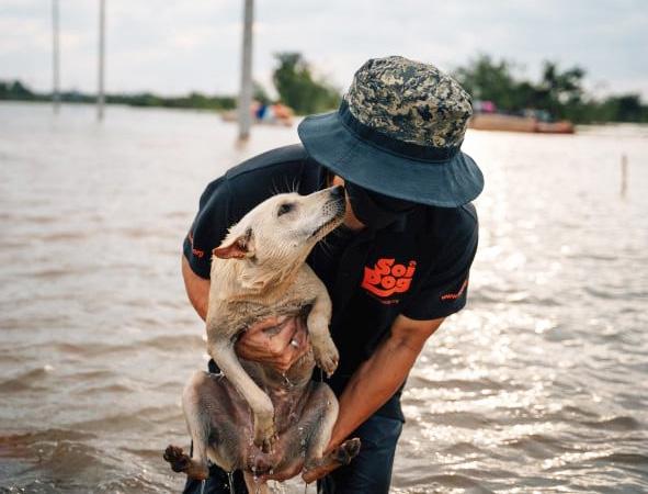 дом за считанные минуты затопило, а собаку унесло быстрым потоком воды. К счастью, пес смог забрать ся на дерево, переждать потоп и на следующий день воссоединиться с хозяином. Жительница Сингбури рассказа ла, как спасала чужого щенка, ко торому некуда было деваться, когда дом его хозяев затопила стремитель но поднявшаяся вода. По ее словам, наводнение в этот раз было куда хуже, чем в прежние годы. «Но как минимум мы в безопас ности, никто не пропал, мы можем продолжать заботиться о собаках», – сказала она. – «И я хочу поблаго дарить всех, кто помог нам с кормом для кошек и для собак. Это очень много значит для нас». «Важна любая помощь» Фонд Soi Dog не получает госу дарственного финансирования и по лагается