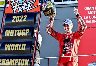 Ducati’s Francesco Bagnaia celebrates his title win in Valencia. Photo: AFP
