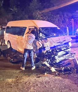 Police and rescue workers arrived to find a white Toyota van registered in Songkhla had crashed head-on into a black Hyundai van registered in Phuket.