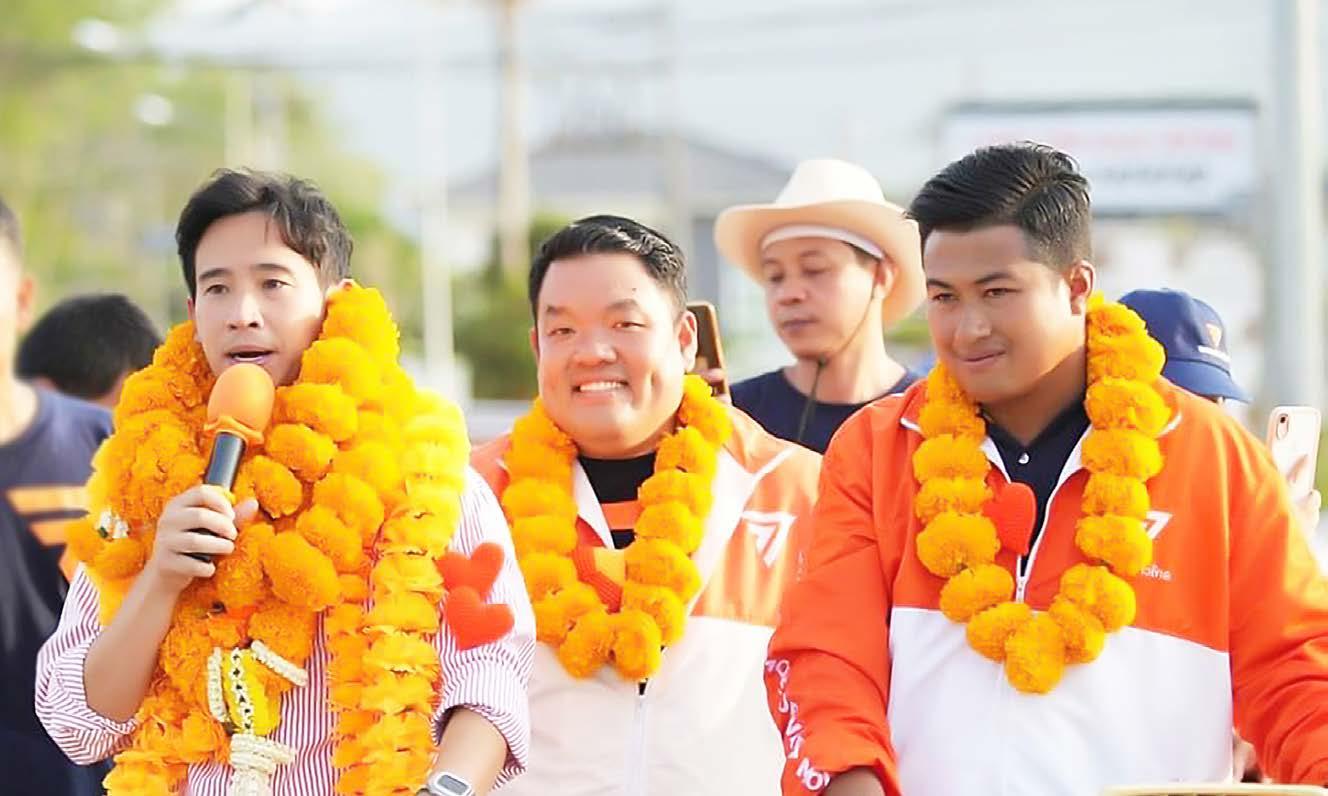 พิิธา ลิ้มเจริิญริตน์์ หััวหัน์าพิริริคก้้าวไก้ลิ้ ยก้ทััพิลิ้งภููเก้ต เดิิน์ทัางสู่เวทั ก้ลิ้างสู่ะพิาน์หัน์พิริ้อมผู้้สู่มัคริ สู่ สู่ พิริริคก้้าวไก้ลิ้ จ.ภููเก้็ต ขึ้้�น์ปริาศริัย บน์เวทัีใหัญ� ชููหััก้ปาก้ก้าเซีียน์ปก้ธงสู่้มทัเก้าะภููเก้็ต ภาพ: พรรคก้้าวไก้ล