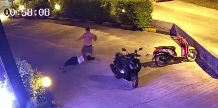 After he was punched in the face, the foreigners mounted their motorbikes and sped off.