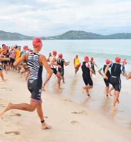 The unique race format includes a 1.8km swim in the Andaman Sea and freshwater lagoon, a 50km bike with chal lenging climbs and descents, and a 12km run along country lanes.