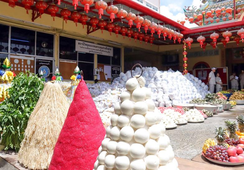 เพ้ื�อประกุอบพ้ธิีเซึ่นิ ไห้วั้ในิสืถุานิทีสืาคัญของชีมูชีนิต่างๆ ซึ่่�งจะมูีของ ไห้วั้เปนิกุับข้าวั อาห้ารต่างๆ เชีนิเดยัวักุับกุับเซึ่นิ ไห้วั้บรรพ้บรุษในิชีวังตรุษจนิ อาห้ารทีสืาคัญ คือ เสืนิห้มูี และมูีอาห้ารประเภูทเนิื�อสืัตวั์,ผู้กุ,ผู้ล ไมู้,เครื�องดืมู และประเภูทขนิมู และที�ขาดไมู่ได คือ ขนิมูเต่าสืีแดง เรยักุวั่า ตัวักุู้ ทั�งนิี ขนิมูเต่าสืีแดง ห้รือตัวักุู้ของคนิภููเกุ็ต ทา จากุแป้งสืาลผู้สืมูนิาตาลปนิข่นิเปนิตวั ให้้มูรูปร่าง