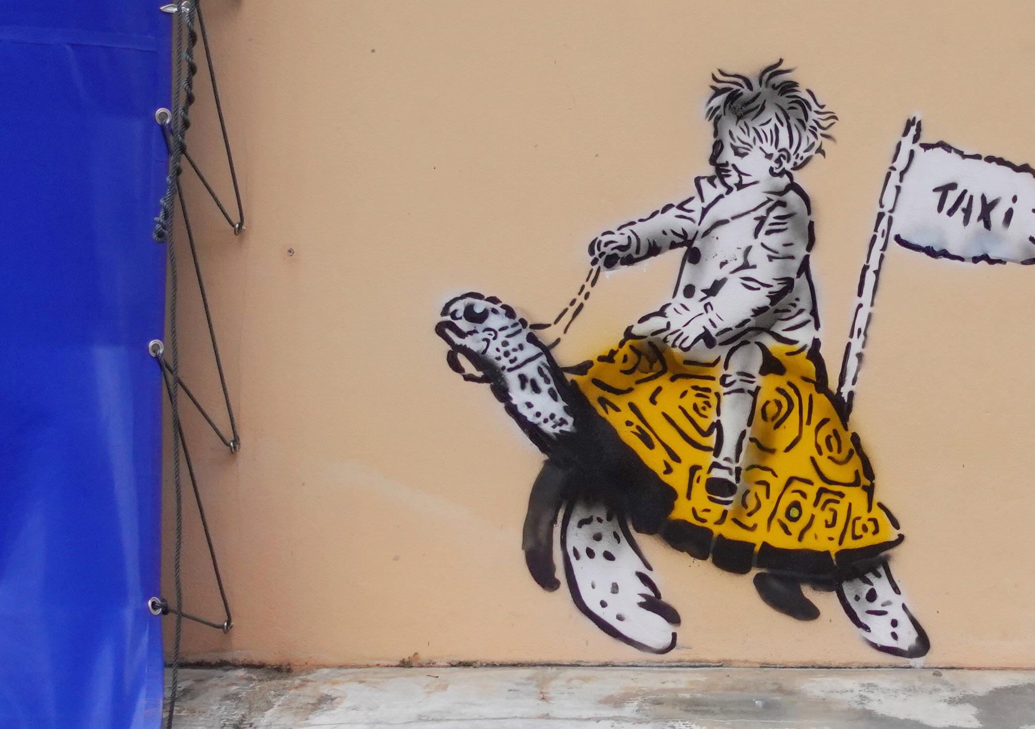 งานศิิลปะแบงกซี่่ในพ่�นที่่�ตาบลกะร์น หลัง จำากที่่�เคนน่�ไ ดิช่�ไปที่่�กาแพงตดิถนน ก็ไดิม่ ล้กค้าจำำานวนมากเดิินเข้้ามาที่่�บาร์์