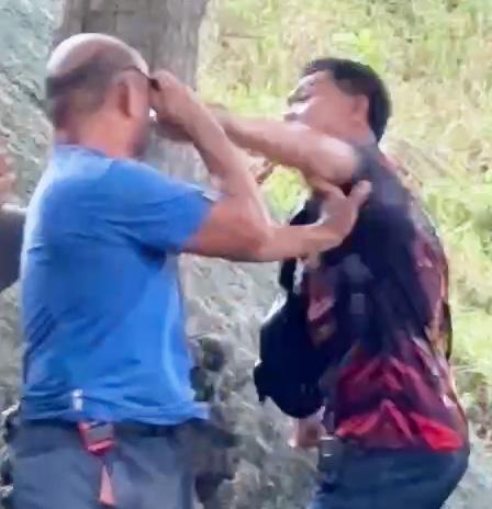 An argument ensued, and as seen in the video clips shared online one man wearing a yellow shirt struck Mr Meekiat on the head with a piece of wood.
