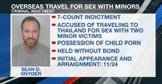 The charges filed against Snyder currently stand as: Travel with Intent to Engage in Illicit Sexual Conduct (3 counts); Engaging in Illicit Sexual Conduct in Foreign Places (3 counts); and Possession of Materials Containing Child Pornography (1 count).