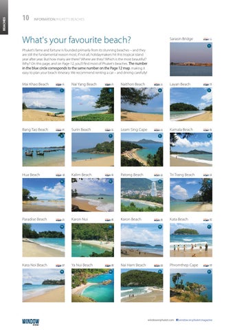 Phuket's fame and fortune is founded primarily from its stunning beaches – and they are still the fundamental reason most, if not all, holidaymakers hit this tropical island year after year. But how many are there? Where are they? Which is the most beautiful? Why? On this page, and on Page 12, you'll find most of Phuket's beaches. The number in the blue circle corresponds to the same number on the Page 12 map, making it easy to plan your beach itinerary. We recommend renting a car – and driving carefully!
