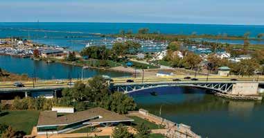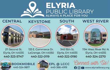 ON THE COVER: Fall colors reflect in the Black River at Cascade Park, a 145-acre tract of natural land in the heart of Elyria. The east and west branches of the Black River meet at Cascade, forming the park’s namesake falls. The park offers hiking, picnic areas, overlooks, playgrounds, a sledding hill, reservable shelters, and a Nature Center. Photo: Gabe Leidy Photography. THIS PAGE: The script “Lorain” sign (top) located on the corner of West Erie Avenue and Broadway; (above right) ribbon cutting for the new Story Time Room at West River Library in Elyria. : Cascade