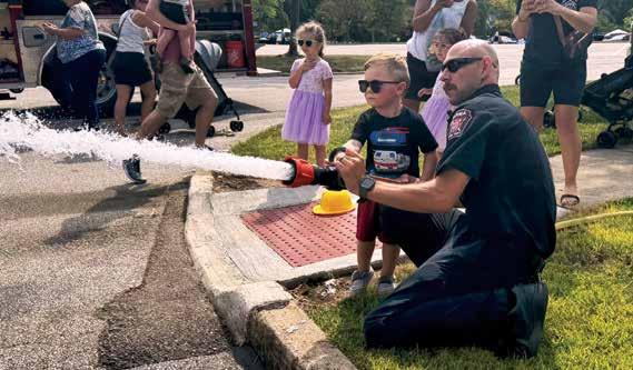 THIS PAGE: A future firefighter tries to put out virtual flames during the annual Touch A Truck event with some help from a Parma firefighter.