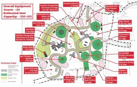 KALEIDOSCOPE PLAYGROUND concept drawing that shows many of the new additions that will be added to the existing park and the general design to accommodate kids of all ages.