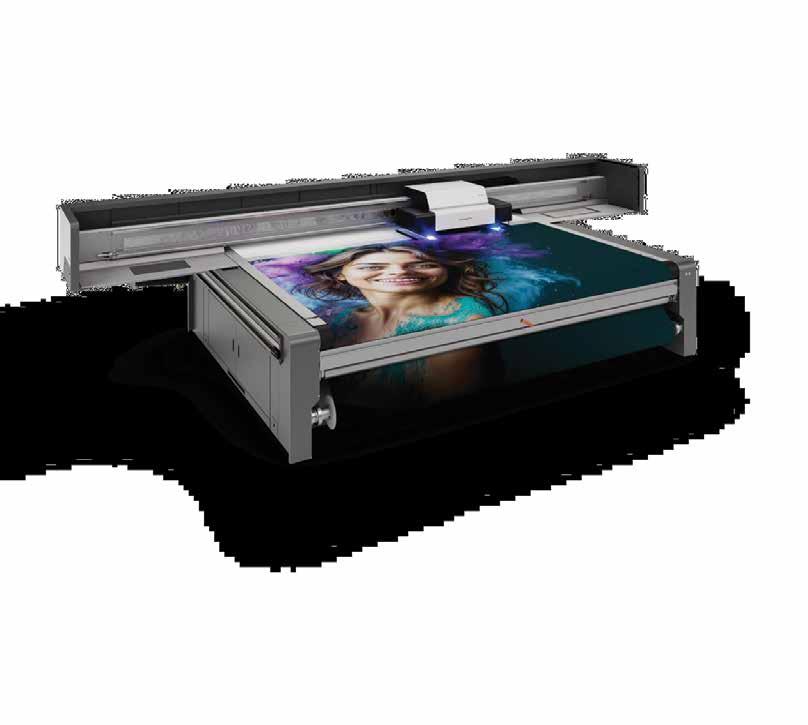 The Colorado M-Series, with its modular design, offers scalable print speeds and includes white ink capabilities. Equipped with Canon’s UVgel technology, it delivers highquality, durable prints with excellent colour consistency and scratch resistance. It is ideal for applications such as wall coverings, floor graphics, and vehicle graphics, offering fast turnaround times and low operating costs.