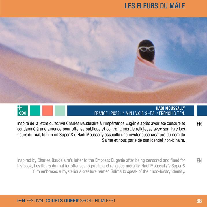 Inspiré de la lettre qu’écrivit Charles Baudelaire à l’impératrice Eugénie après avoir été censuré et condamné à une amende pour offense publique et contre la morale religieuse avec son livre Les fleurs du mal, le film en Super 8 d’Hadi Moussally accueille une mystérieuse créature du nom de Salma et nous parle de son identité non-binaire.