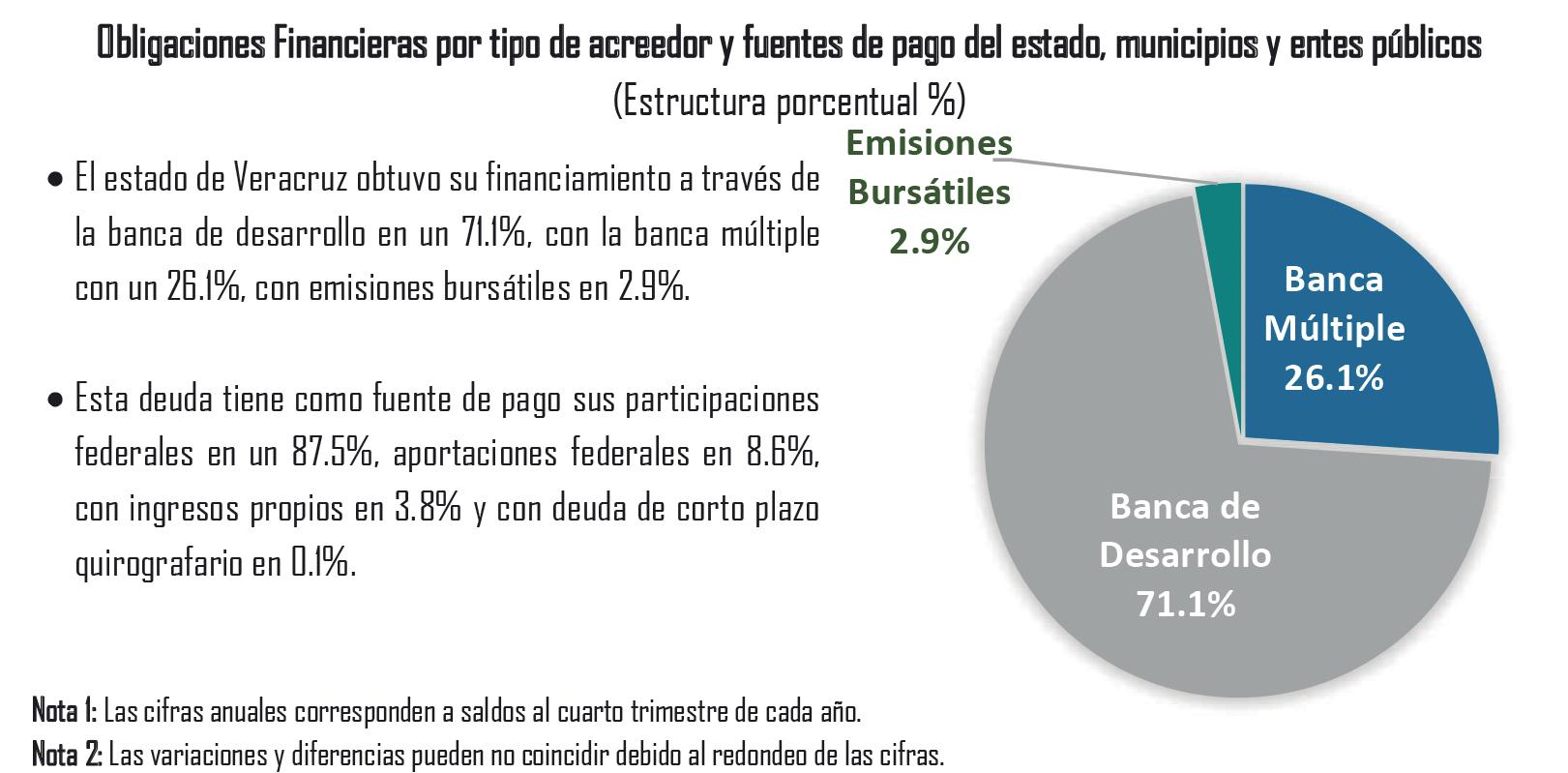 El estudio del investigador Vladimir González Herrera, publicado por el IBD, revela que a diferencia de entidades como Hidalgo con 0.7%, Puebla con 0.5%, Tabasco con 0.5%, Campeche con 0.5%, Querétaro 0.3% y Tlaxcala 0.0%, el estado de Veracruz se encuentra entre las entidades que sobresalen con una mayor relación de su deuda respecto de su PIB: Quintana Roo con 5.0%, Chihuahua con 4.7%, Nuevo León con 4.5%, Chiapas con 4.4% y Veracruz con 4.0%.