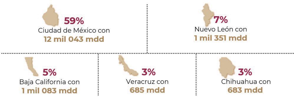 POR OTRO LADO, LOS 10 ESTADOS CON MAYOR INVERSIÓN EXTRANJERA EN EL PAÍS FUERON LOS SIGUIENTES: