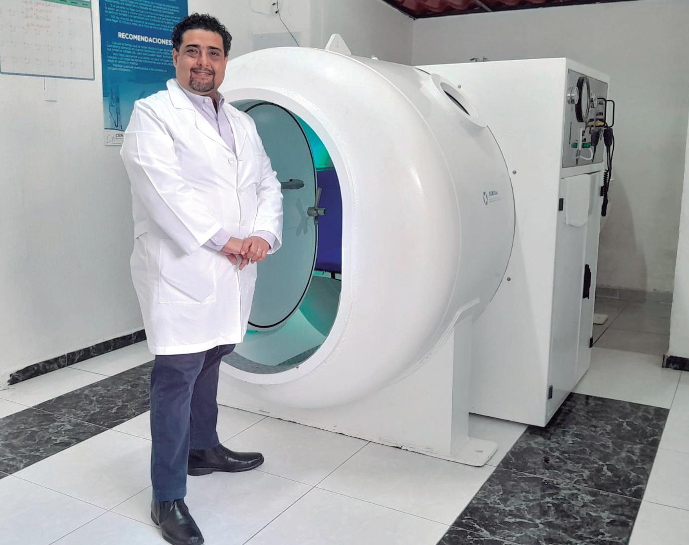 - Aquí tenemos a la doctora Brenda Fuentes, especialista en medicina hiperbárica, quien valora a los pacientes antes de entrar a la cámara y determina cuántas sesiones y a qué presión se le va a dar el tratamiento.