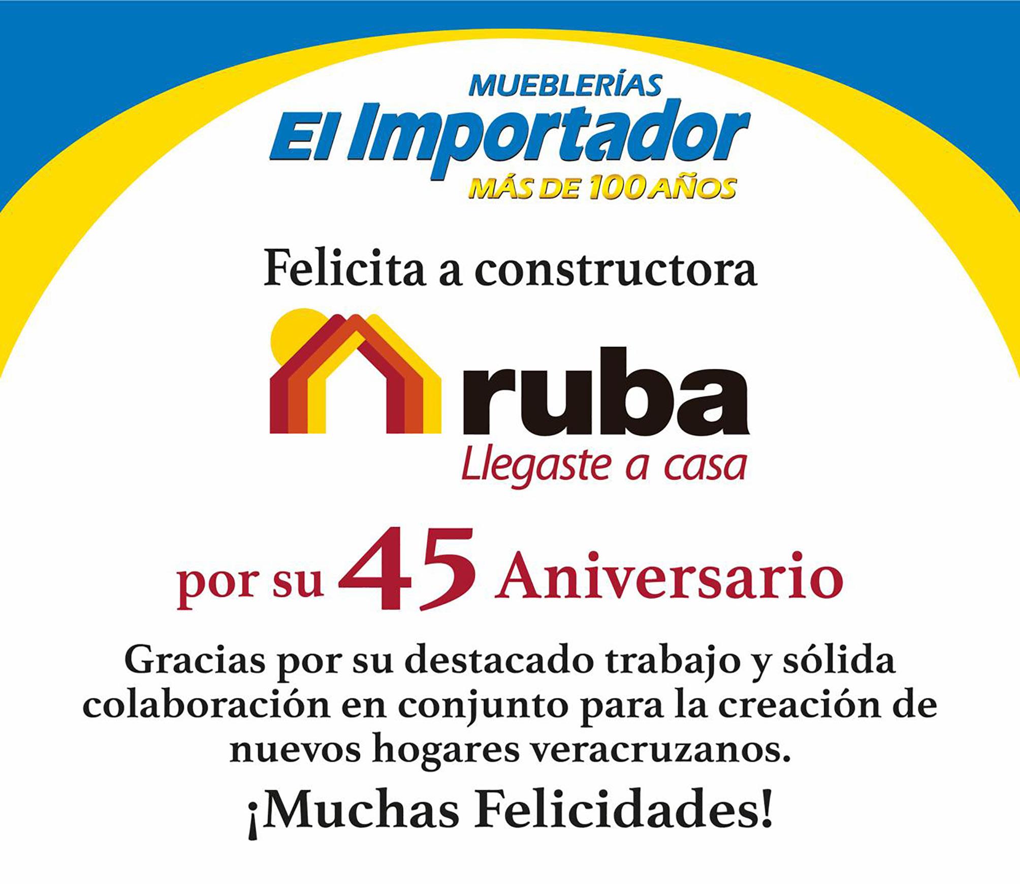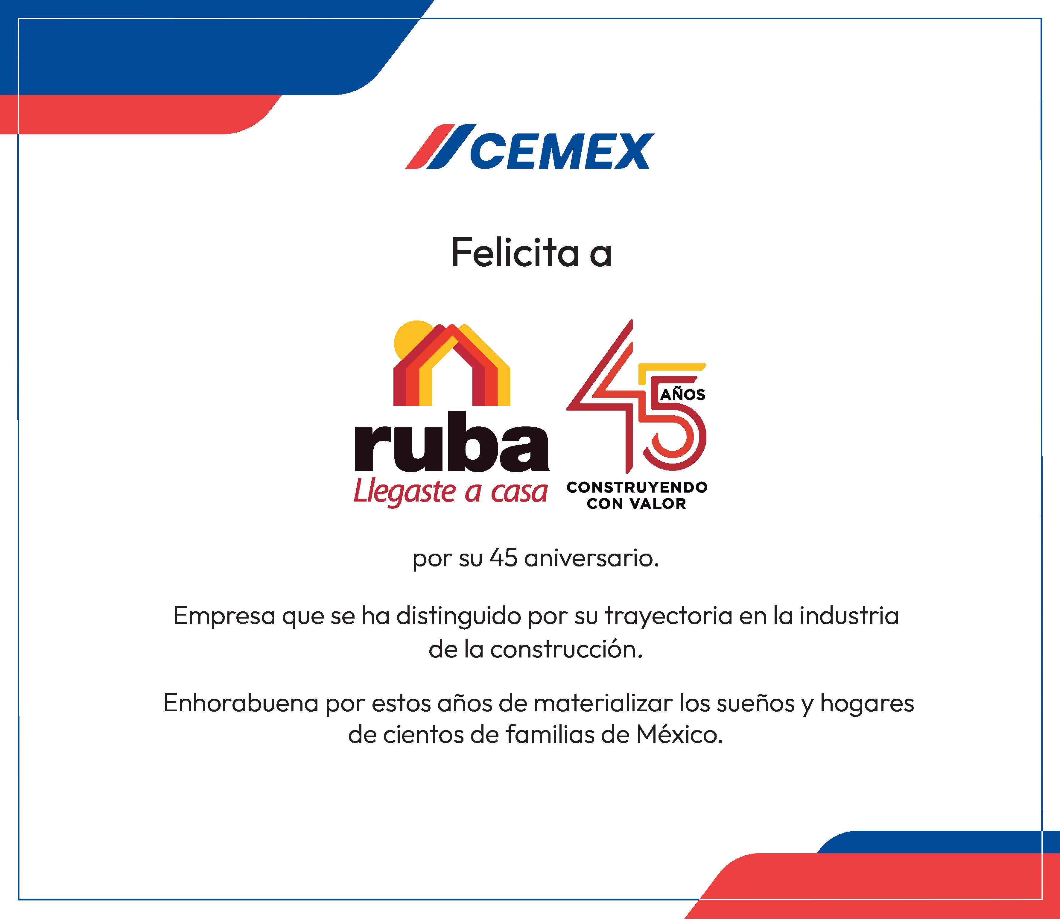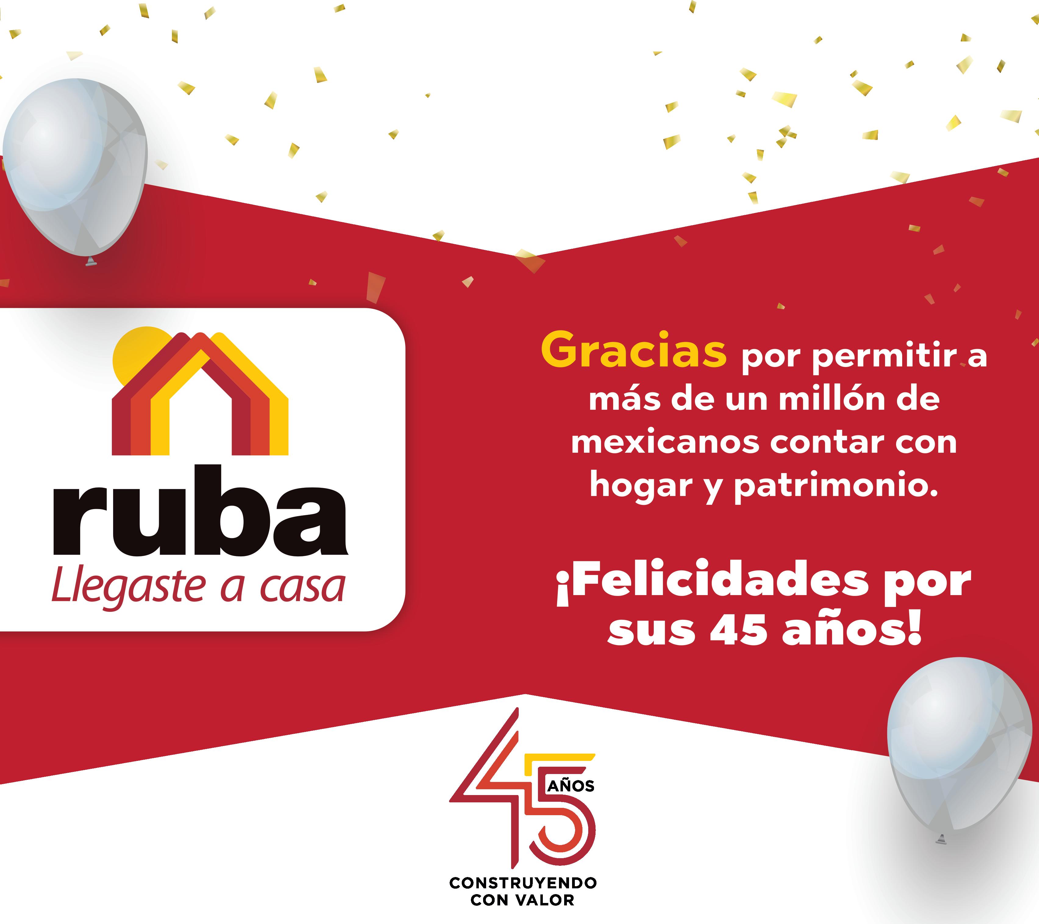 "¡Felicidades a todos y cada uno de los integrantes del Grupo Ruba por sus 45 años de trayectoria y éxito en la industria de la vivienda en México!
