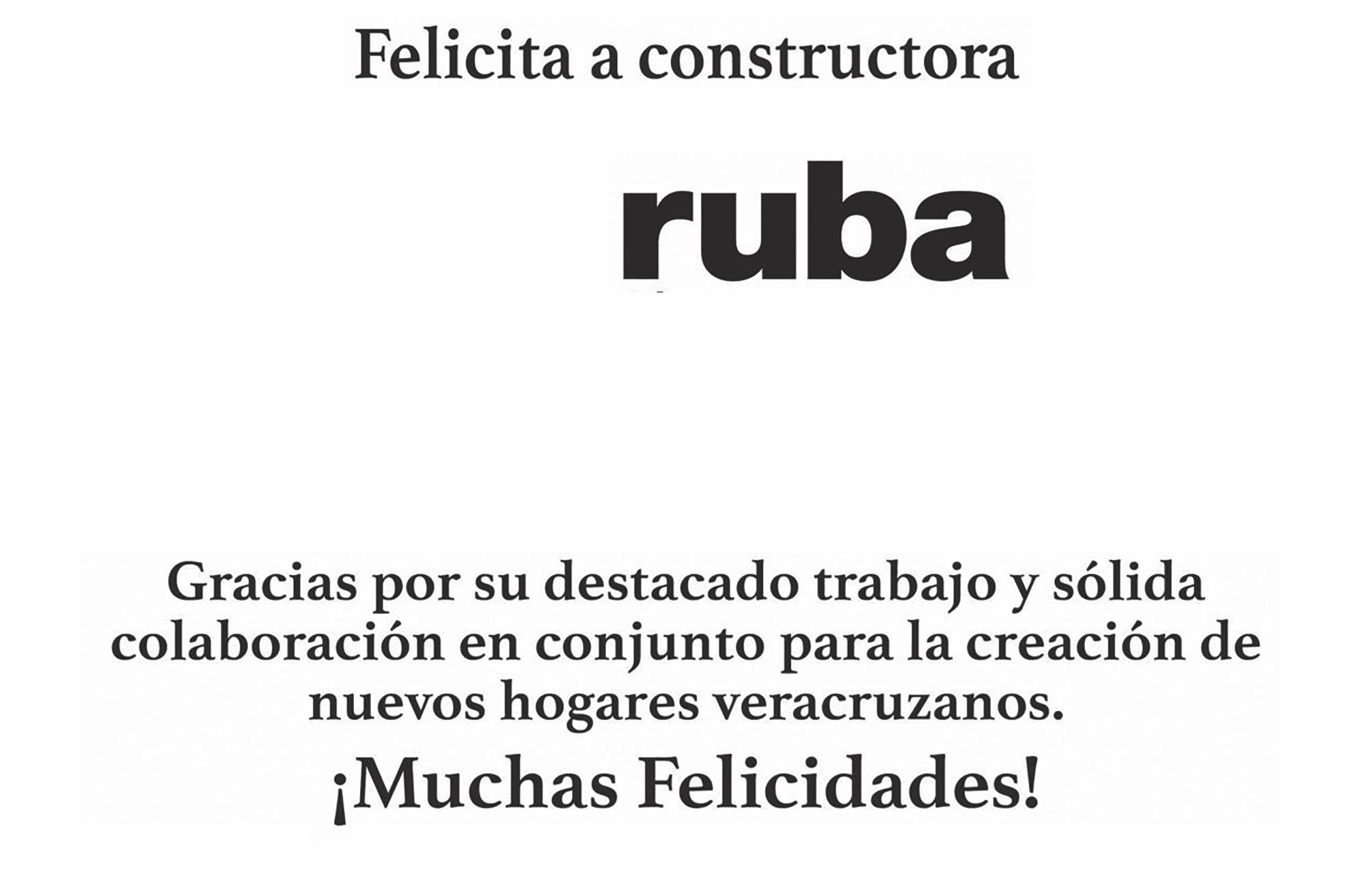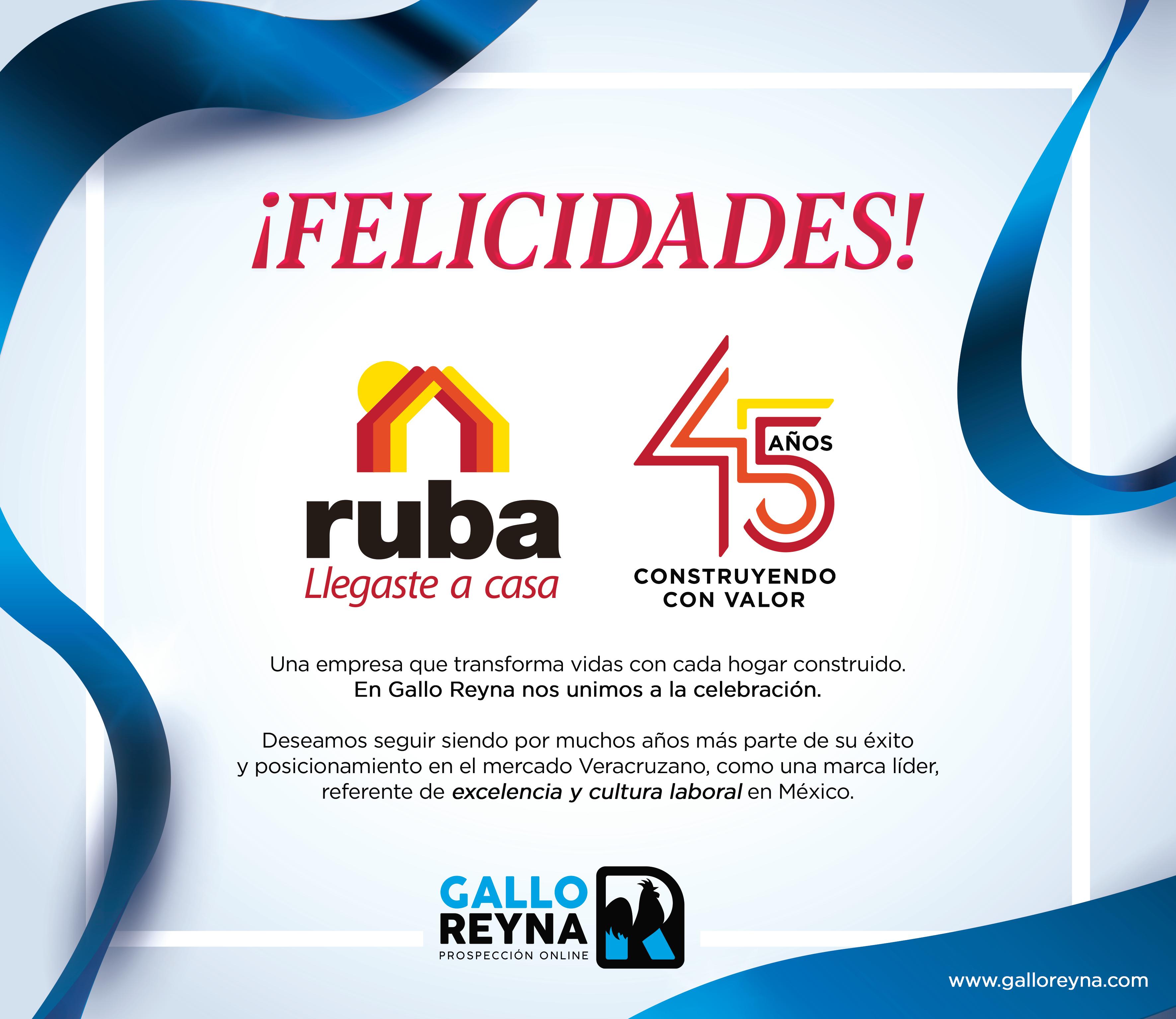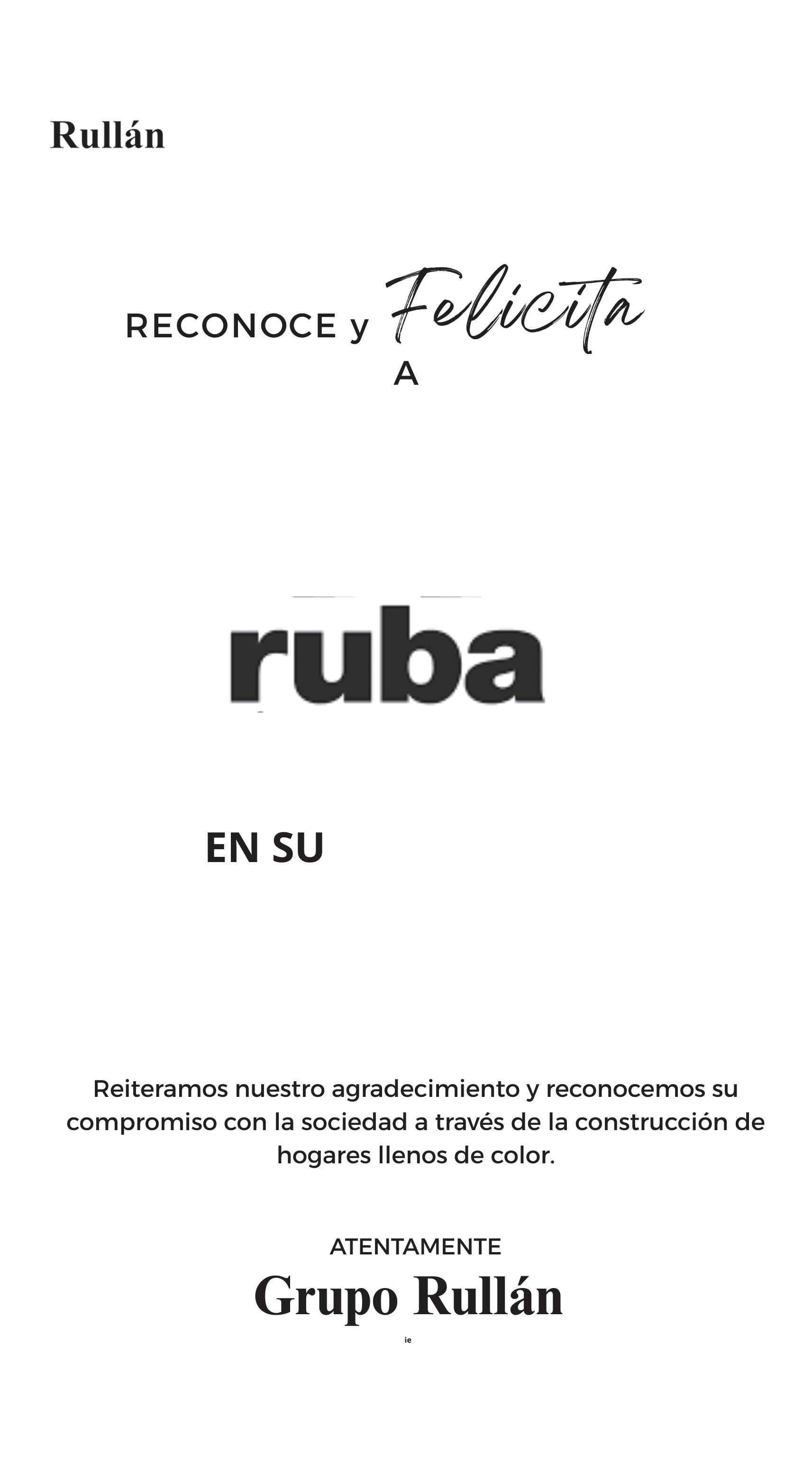 "¡Felicidades a todos y cada uno de los integrantes del Grupo Ruba por sus 45 años de trayectoria y éxito en la industria de la vivienda en México!