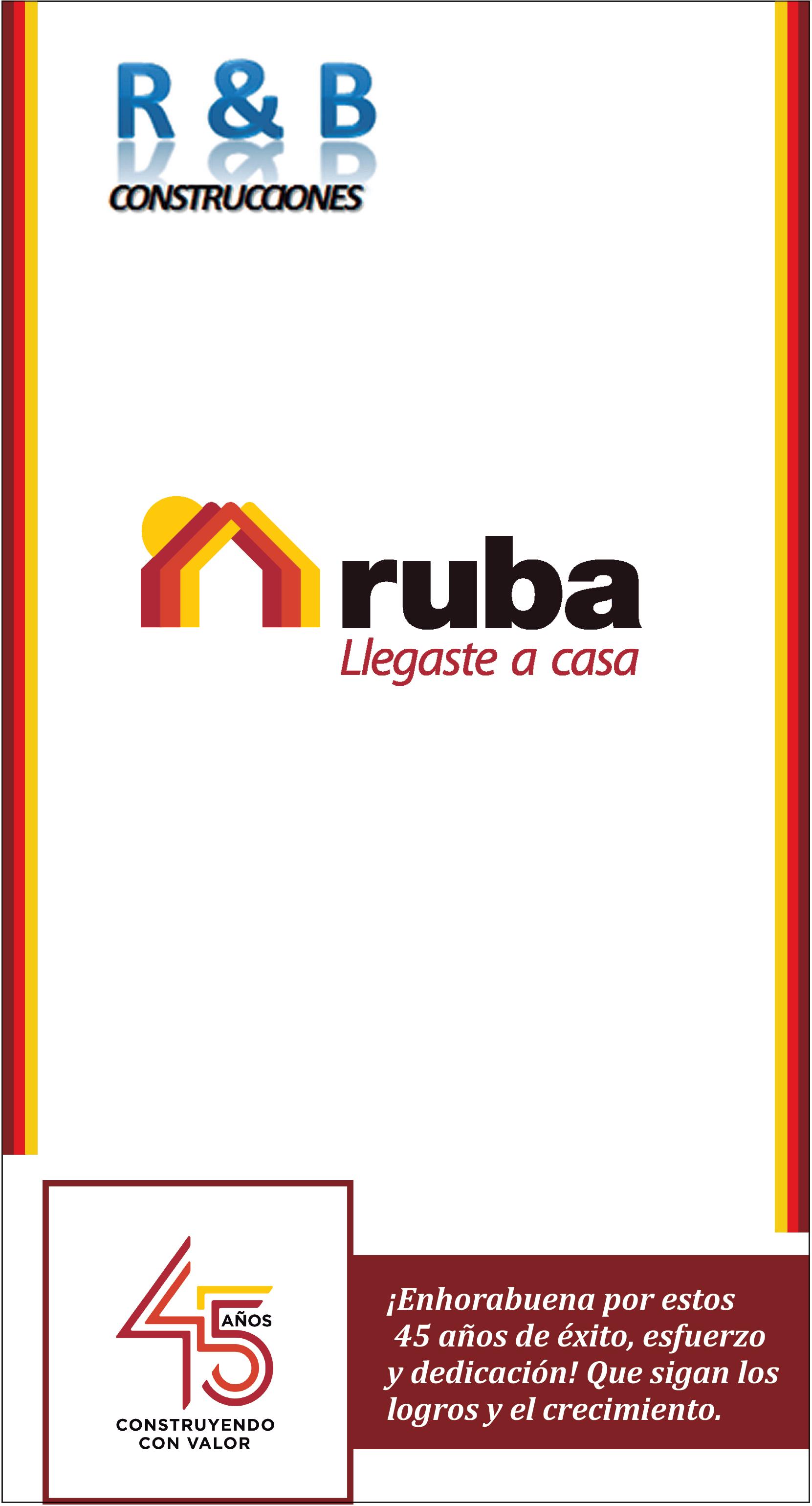 El modelo de negocio de la empresa ha ganado una sólida confianza en el mercado y en cada una de las 260 mil fami lias que tienen una casa Ruba, permitiendo a la empresa avanzar con bases sólidas a lo largo de su historia. Con una firme filosofía humanista, Ruba se compro mete a ofrecer a sus colabo radores oportunidades de crecimiento tanto personal