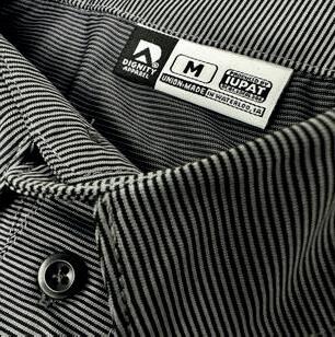 • Dignity Apparel hem tag on pocket