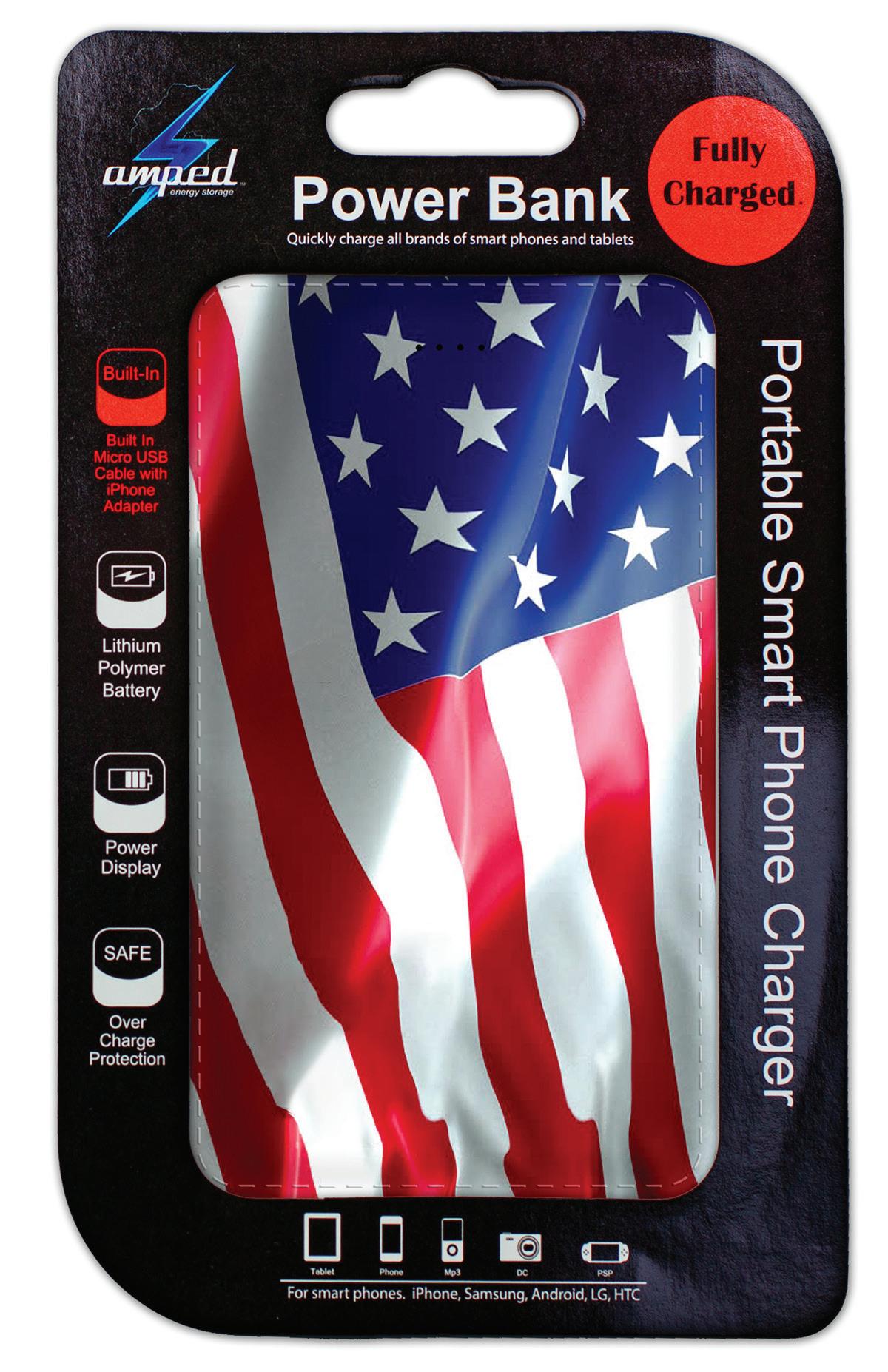 5,000mAH rechargeable power banks. Units have a built in micro USB cable, additional USB output port. Comes fully charged in a clamshell packaging. 4 Color Process edge to edge Screen Print. USA assembled and decorated Min. 48 ITEM# AS1145
