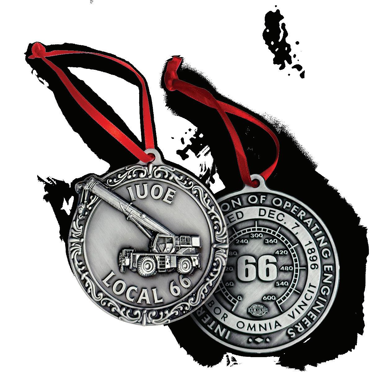 Union-made die struck medals are a meaningful way to celebrate the holidays and show solidarity. Choose from die struck, enamel filled, or raised 3D etched decoration for a custom look. Min. 100.