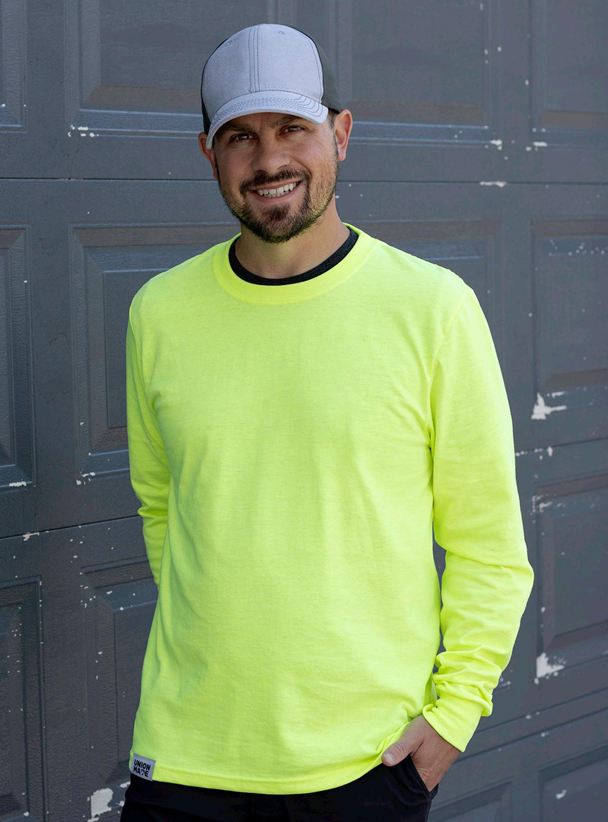 This ultra-bright, high-visibility long-sleeve tee offers durability and comfort in demanding work conditions. Made from a midweight 50/50 cotton/poly blend for all-day wear.