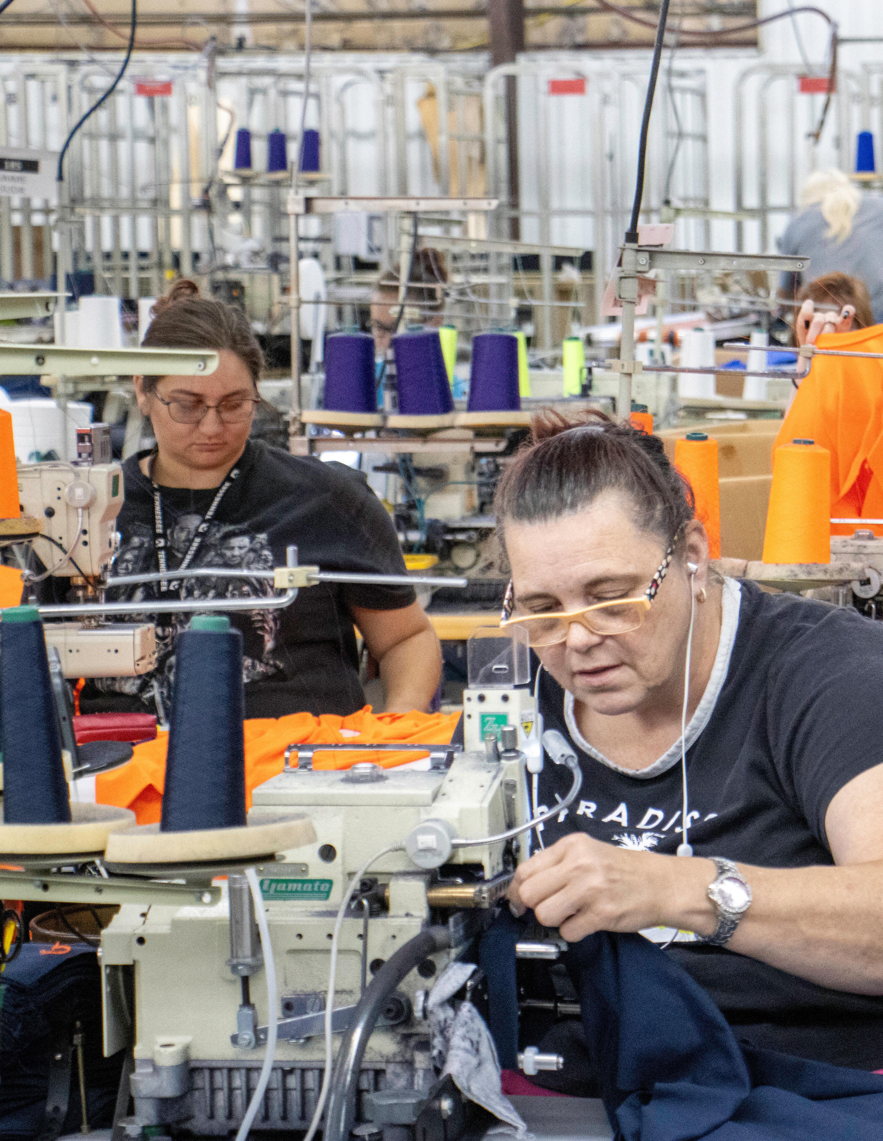 Image Pointe and Dignity Apparel are family-owned businesses, manufacturing, decorating, and shipping 100% union and USA-made garments and promotional products. We do this because we enjoy manufacturing and because we care about our people. We care about fairness, equality, affordable healthcare, retirement savings, job security, and improving lives. The challenges of business are real, but seeing workers—whether first-year sewers, second-year graphic artists, or career screenprinters and knitters —thrive in meaningful work is what drives us. If you’re ever in Northeast Iowa or East Tennessee, we encourage you to let us know. We’d love to show you the union garment industry in action!
