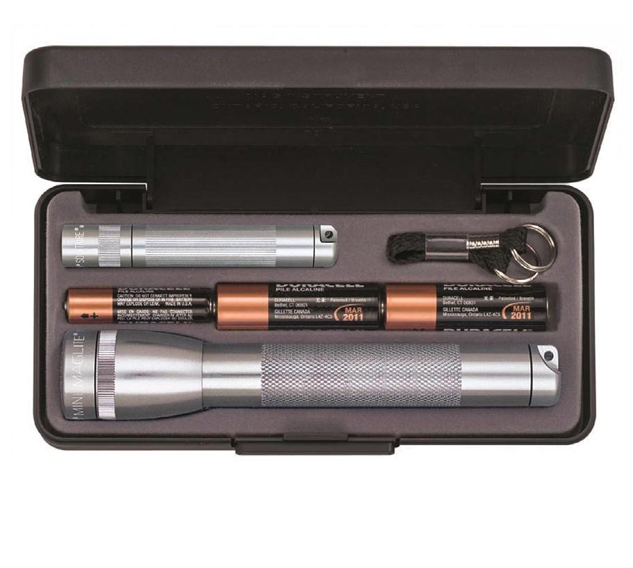 3 1/4” Maglite ® Solitaire with the 5 3/4” AA Mini Mag- Lite®. Package includes both flashlights, 1 “AAA” battery, 2 “AA” batteries and a key ring/lanyard attachment. Packaged in a sleek presentation gift box. Min. 24.
