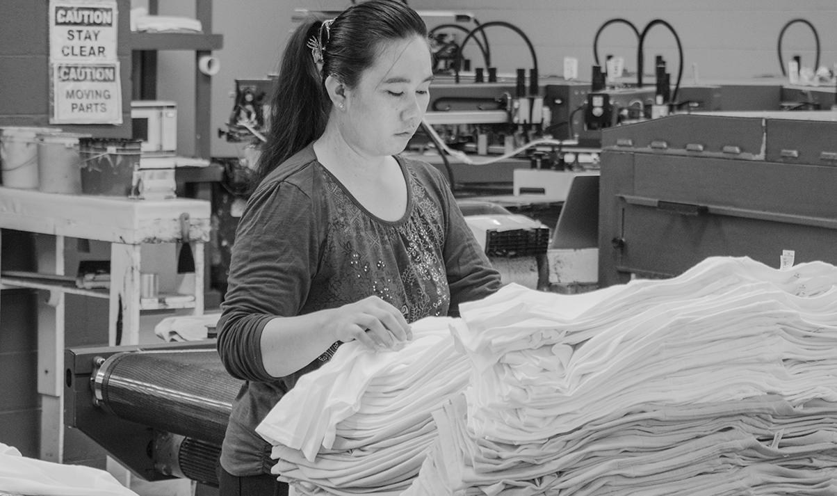 Dignity Apparel garments are made from union-knit fabric at our Tennessee mill, union-cut and sewn in our factories in Tennessee and Iowa and union-decorated in Iowa. Image Pointe and Dignity Apparel employees are proud members of IUPAT DC 81, Local 246 and Workers United Local 38.