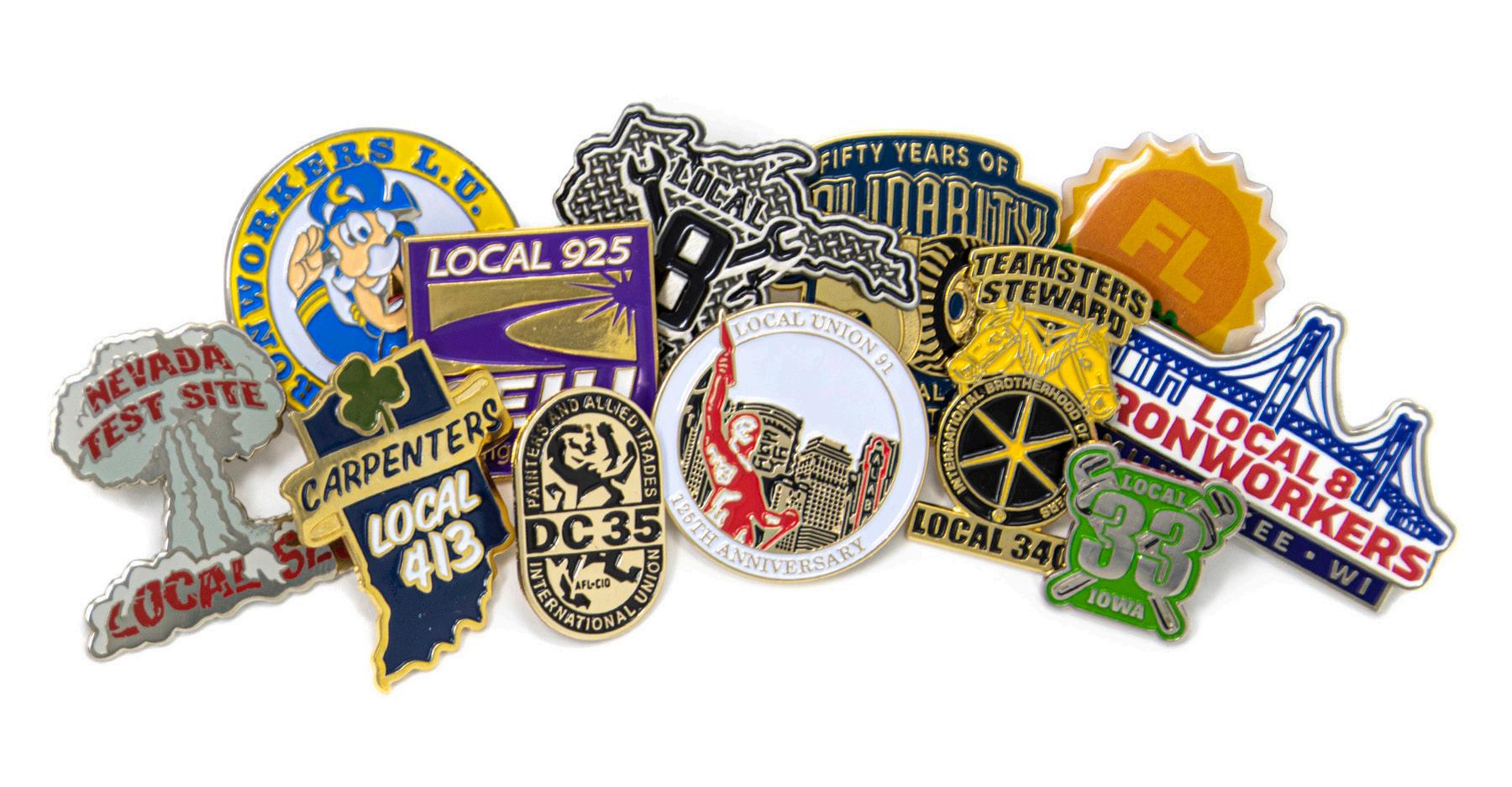 Cut-out lapel pins. Several different sizes and styles available including hard enamel, soft enamel and photo dome. Call for details.