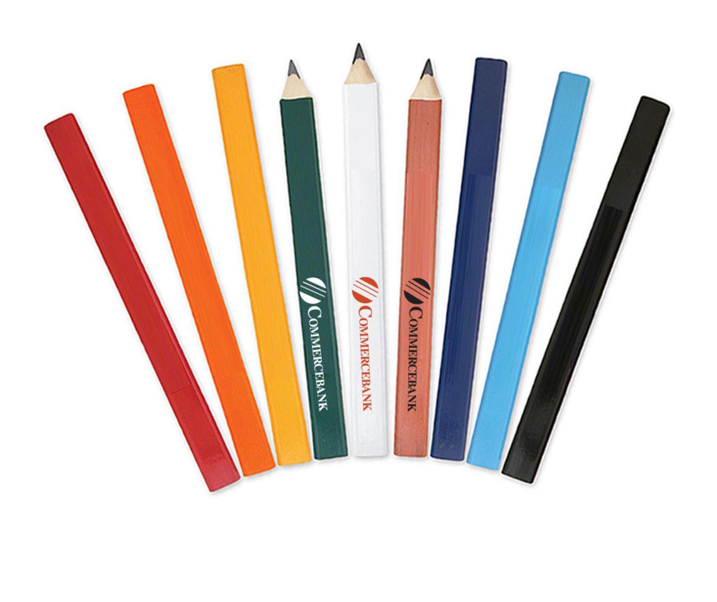 Standard sized carpenter pencil. Imprinted with a one-color screen print. Available in ten colors. Min. 500.