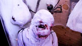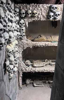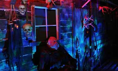 “The swamp house out front this year looks new, but we used it in the back last year as a scene you’d walk into with green fog and swamp effects,” he explains. “The morgue table we have — a kid might jump up from that bed in a bedroom scene next year. We recycle everything.”