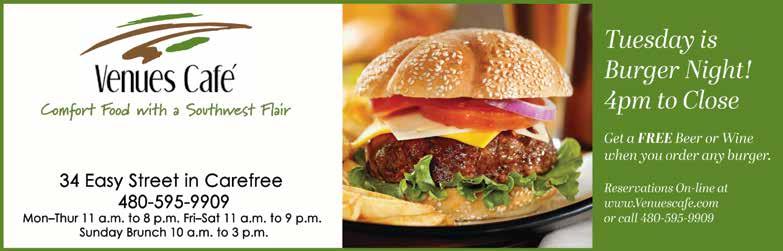 INTERIOR DESIGN SERVICES, HOME FURNISHINGS & FINE ART GALLERY 36889 N. Tom Darlington Dr. Suite B1, Carefree | 480-595-0171 | suebickerdyke.com Hours: Mon. thru Sat. 9am - 5pm Allied ASID SUE BICKERDYKE 26 years in Carefree SUE KRZYSTON A Peaceful Moment, oil. 30” by 24” HOME FURNISHINGS & FINE ART GALLERY THIRD THURSDAY ART NITE THURSDAY, JANUARY 19 FROM 4 TO 7 PM Be our guest! Sip, Shop and Celebrate with Live Music by NuWrld Jazz Quartet TREVOR SWANSON Crowns of Russet, oil and patina on metal. 56” by 20”