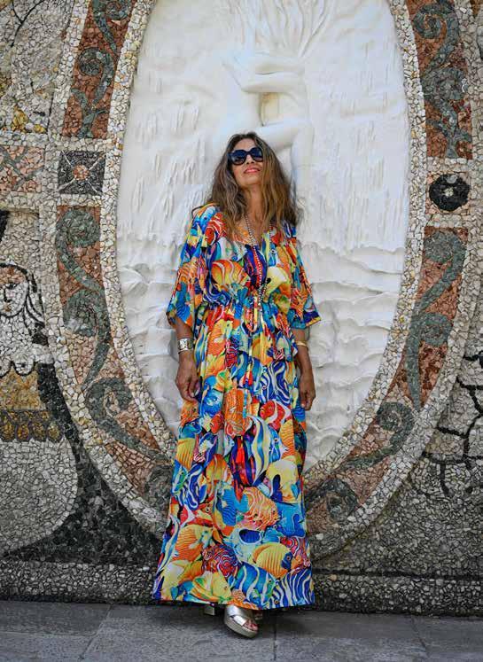 Inspired by her mother, Philomena, Jean Marie Clarke began creating flowy one-size-fits-all kaftans, which are now her signature pieces.