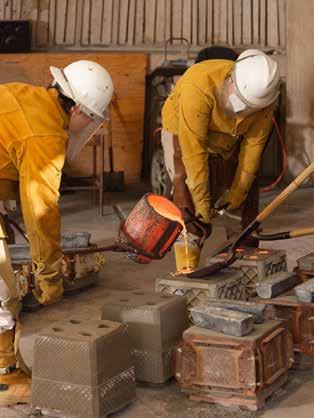 TTwo men — with faces shielded and bodies clad in thick leather sleeves and chaps — slowly lift a crucible from the blazing fires of an underground furnace.