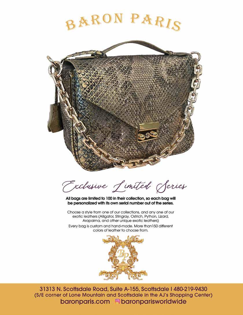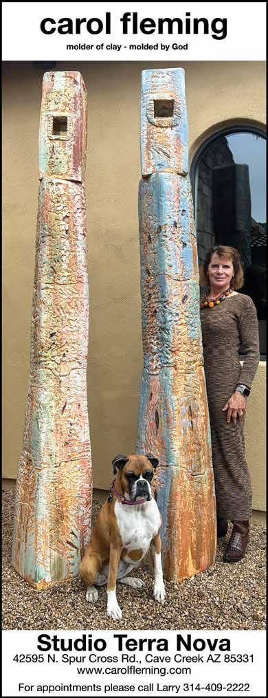 103 imagesarizona.com January 2023 Acrylic, Oil on Canvas, Metal, Bronze & Stone Sculptures, Photography, Digital Composite Imagery, Glass Art, Wood-turning, Jewelry, Ceramic & Resin Art Works Tuesday–Saturday 10-5 p.m. By Appointment Sunday & Monday 100 Easy Street, Suite 1, Carefree AZ 85377 480.313.8447 | gallerymichele.art Stop in TODAY and see our talented Artists original art works! Located Next to the New Hampton Inn in Carefree