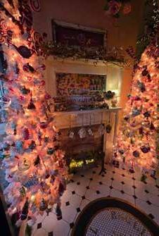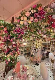 This holiday season, the English Rose Tea Room has transformed into something extraordinary — a shimmering, pink-hued winter wonderland that marries British tradition with unabashed festive glamour. Owner Jo Gemmill has outdone herself, creating what can only be described as candy-cane chic: pastel ornaments cascade from crystal chandeliers, whimsical pink Christmas trees anchor each corner, and every surface sparkles with sugar-coated holiday magic.