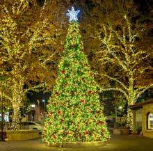 Sedona’s red rocks provide a dramatic setting for dual celebrations at Tlaquepaque Arts and Shopping Village: a tree lighting ceremony Dec. 5 from 5–7 p.m. featuring refreshments, local entertainment and Santa visits, culminating with the Festival of Lights on Dec. 13 from 3–8 p.m., when 6,000 luminarias create an otherworldly glow against adobe architecture.
