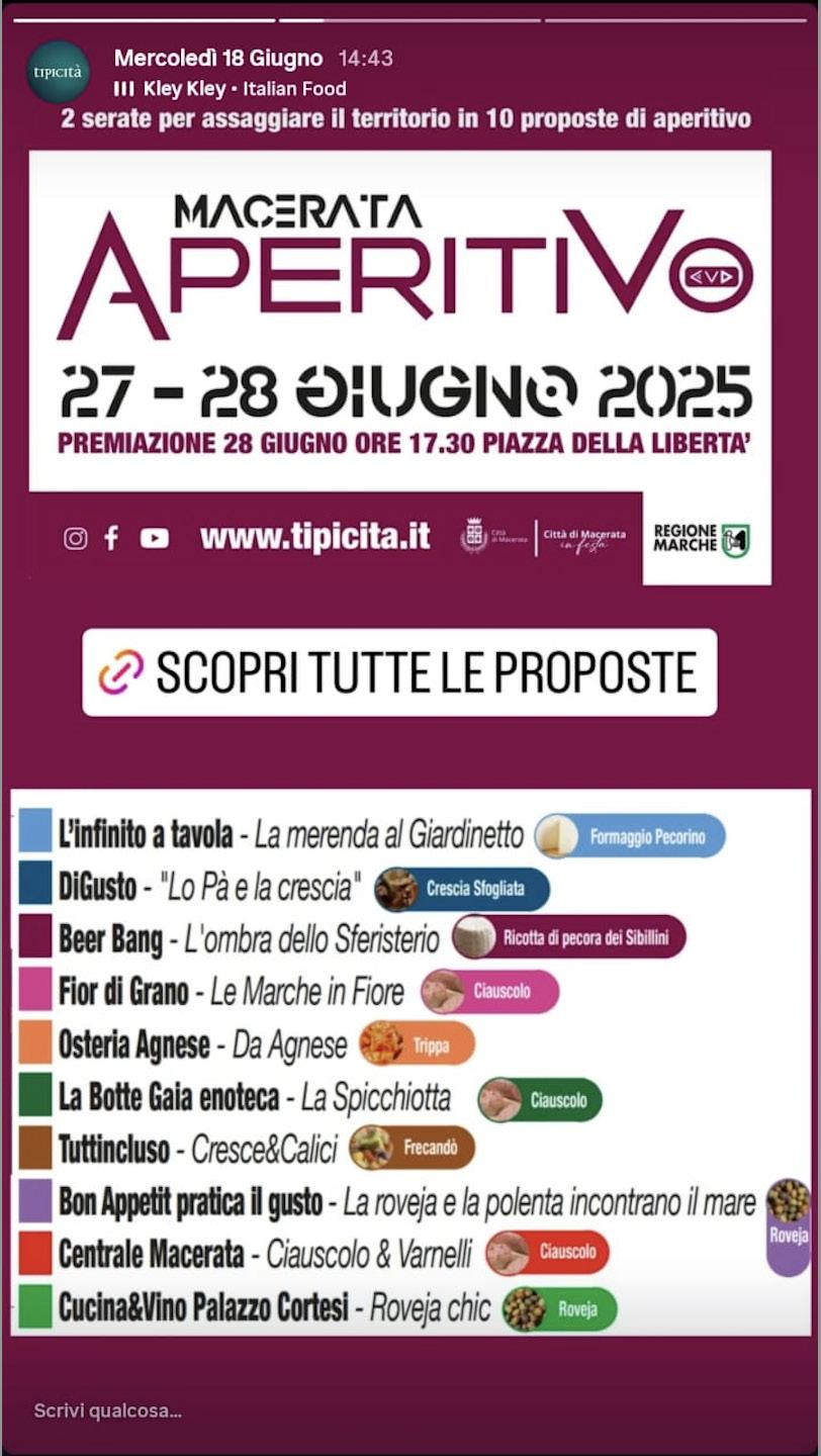 27 e 28 giugno! Segnatevi queste date, perché a Macerata succede una cosa che non potete perdervi: il ritorno di Aperitivo Macerata. Dieci locali della città sono pronti a sfidarsi a colpi di aperitivo per aggiudicarsi la “Cucchiara Macerata 2025”, firmata da Valenti!