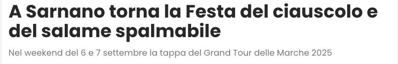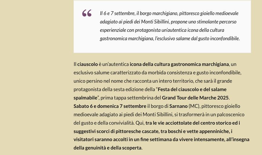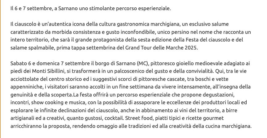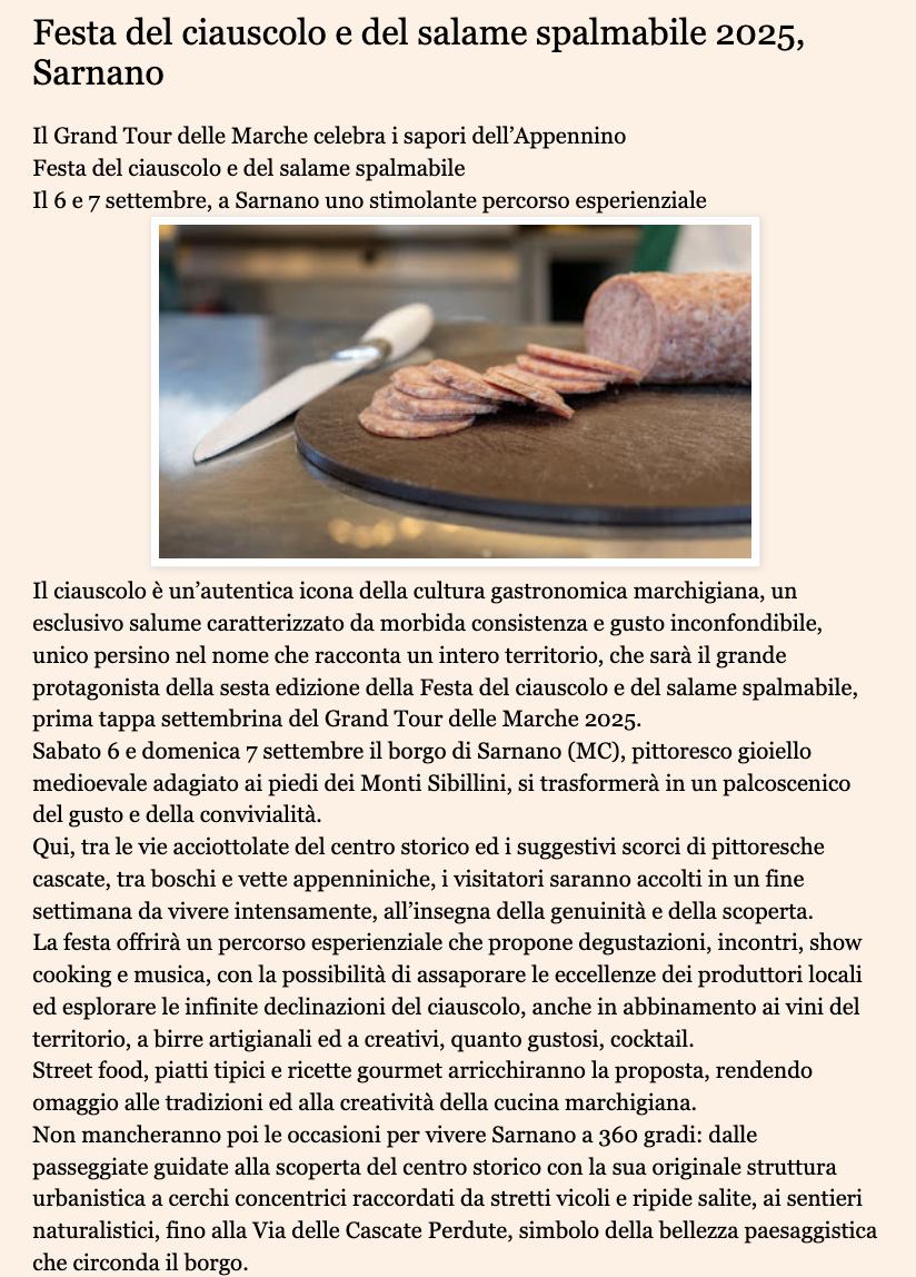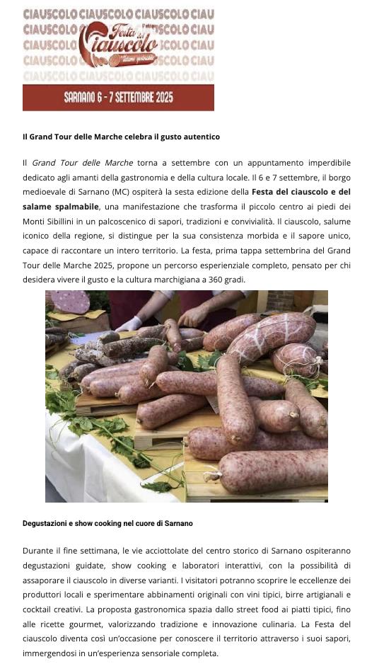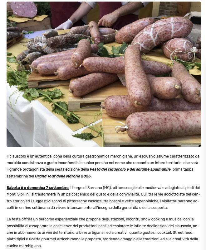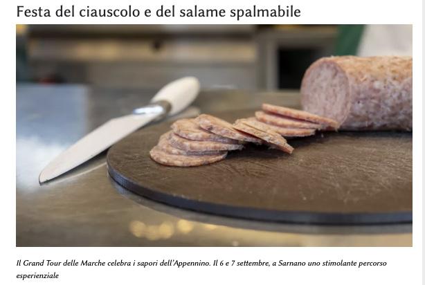 https://marcheinfinite.com/2025/08/30/il-grand-tour-delle-marche-celebra-i-sapori-dellappennino-il-6-e-7-settembre-la-festa-del-ciauscolo-e-del-salame-spalmabile-a-sarnano/