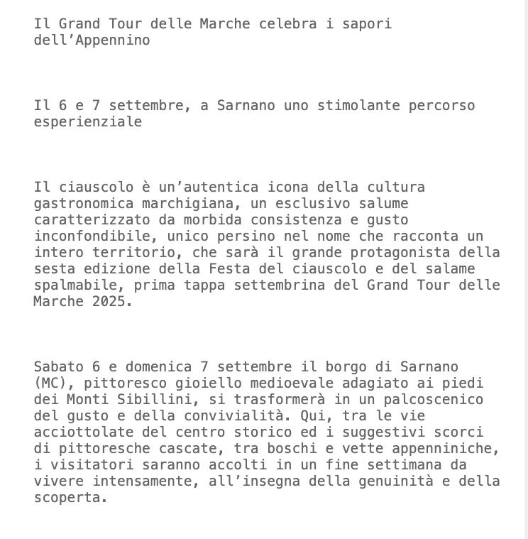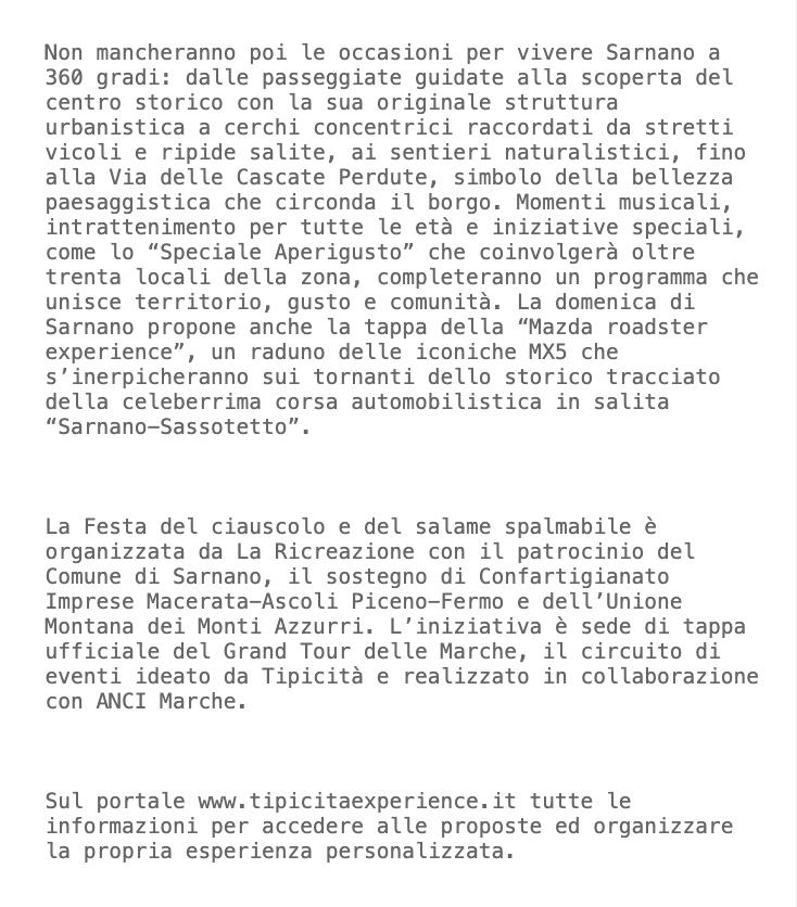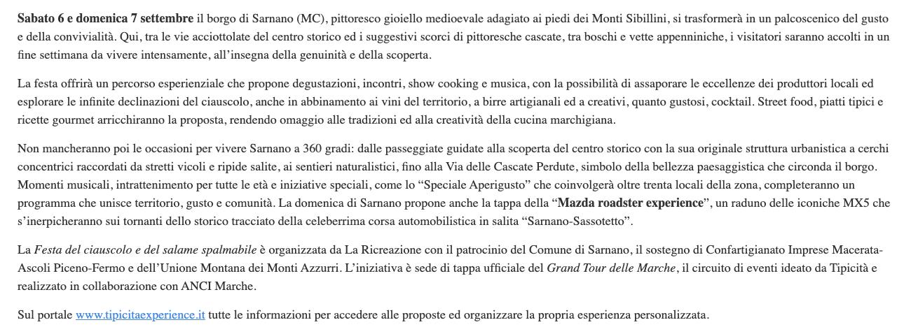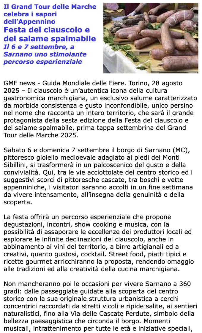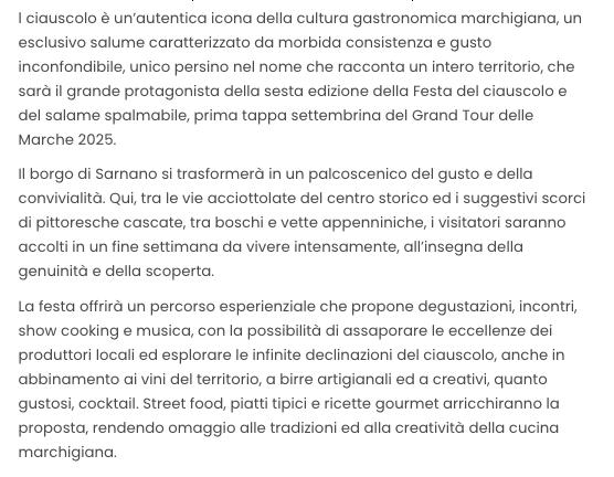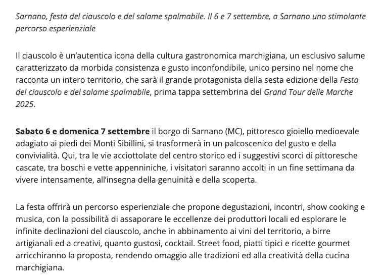 https://marcheinfinite.com/2025/08/30/il-grand-tour-delle-marche-celebra-i-sapori-dellappennino-il-6-e-7-settembre-la-festa-del-ciauscolo-e-del-salame-spalmabile-a-sarnano/