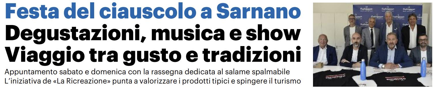 La Festa del ciauscolo e del salame spalmabile è organizzata da La Ricreazione con il patrocinio del Comune di Sarnano, il sostegno di Confartigianato Imprese Macerata-Ascoli Piceno-Fermo e dell’Unione Montana dei Monti Azzurri. L’iniziativa è sede di tappa ufficiale del Grand Tour delle Marche, il circuito di eventi ideato da Tipicità e realizzato in collaborazione con ANCI Marche.