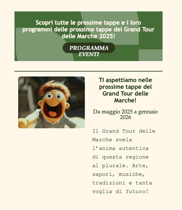 Il Grand Tour delle Marche è un progetto di Tipicità ed ANCI Marche, unico in Italia, che svela l’anima autentica di questa regione al plurale. Arte, sapori, musiche, tradizioni e tanta voglia di futuro!