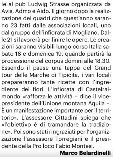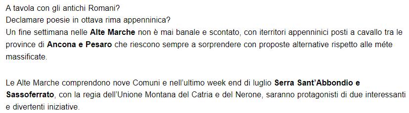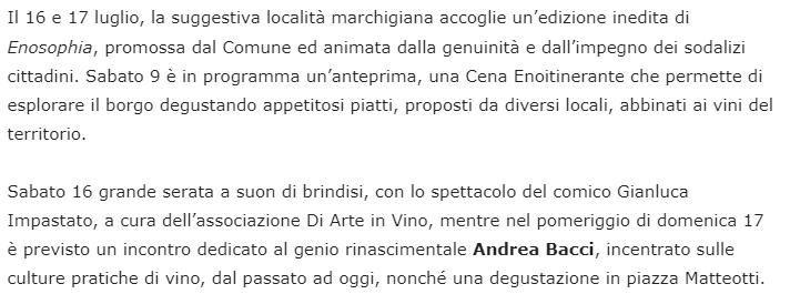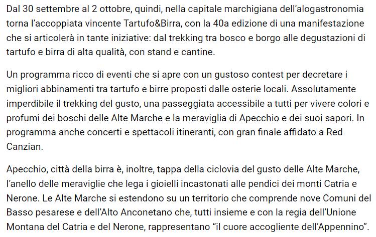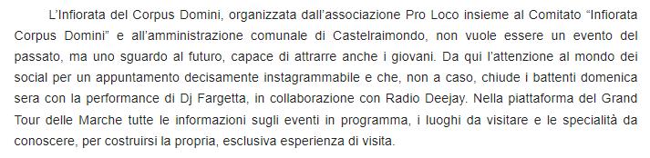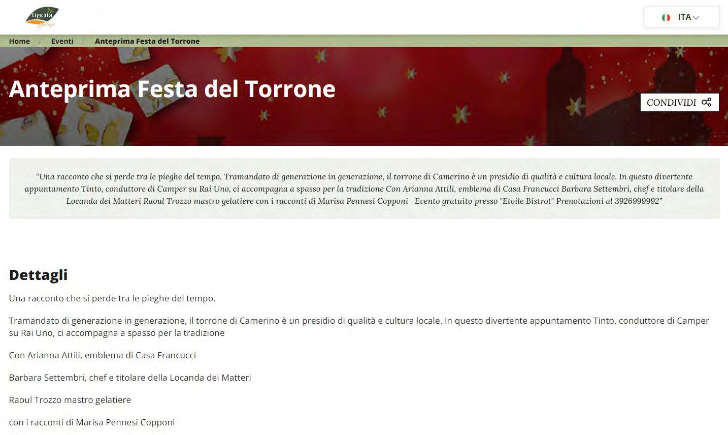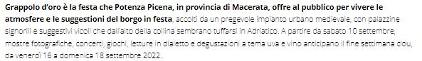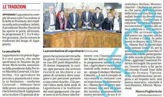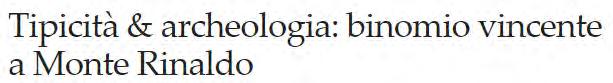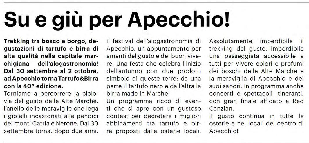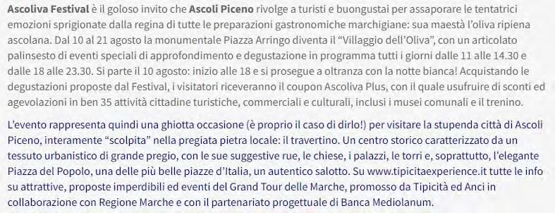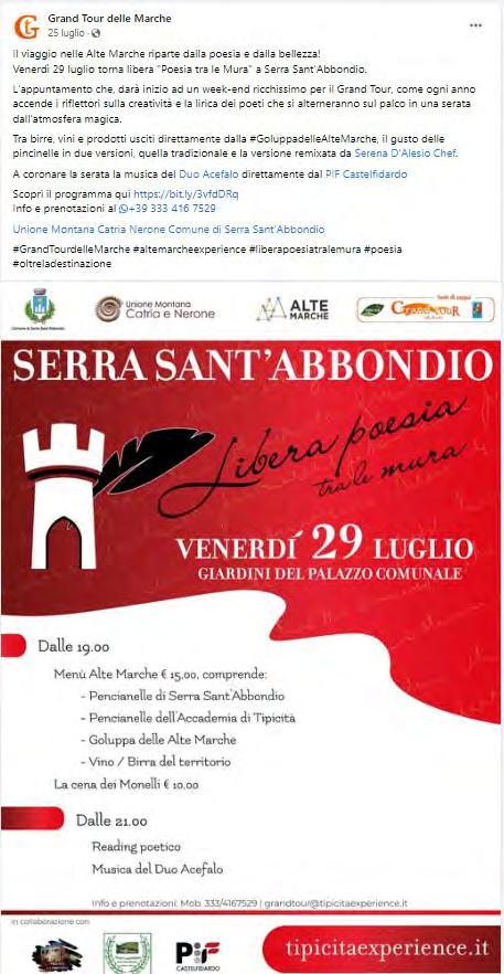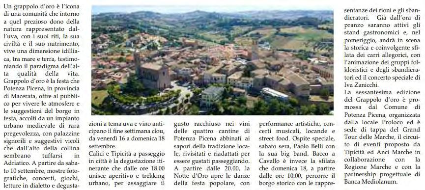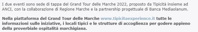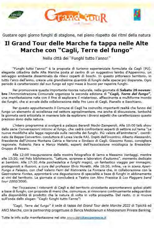 La manifestazione, organizzata dal Comune e dalla Pro Loco di Frontone, è sede di tappa del Grane! Tour delle Marche, il circuito di eventi promosso eia Tipicità e ANCI Marche in collaborazione con Regione Marche e con la partnership progettuale cli Banca Mediolanum e Mediolanum Private Banking.