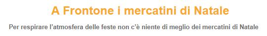 Le festivita sono ormai alle porte ed uno dei migliori dei modi per prepararsi a goderle è l'immersione nella magica atmosfera che si respira nei merca ni natalizi, una tradizione da sempre molto in voga nelle regioni nordiche. E non solo! Infatti, anche a Frontone (PU), caratteristico borgo alle falde dell'Appennino umbromarchigiano, nel periodo prenatalizio si aprono ai visitatori i Mercatini di Natale nella suggestiva cornice del Castello della Porta, un fiabesco "nido d'aquila" che domina le vallate circostanti offrendo uno sconfinato panorama che giunge ftno all'Adriatico e aIla Repul::iblica di San Marino.