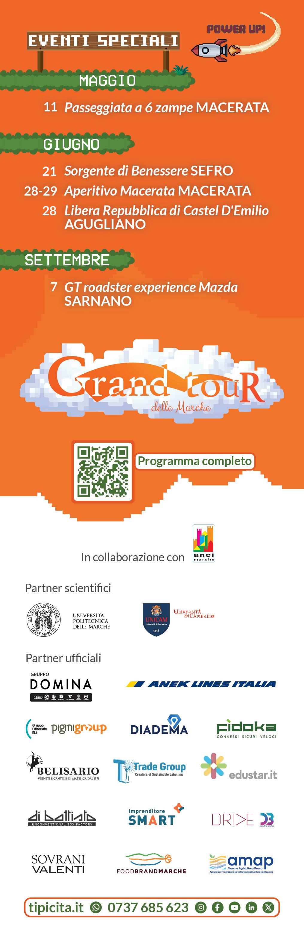 Da quest’anno il Grand Tour diventa anche un grande gioco, tra fisico e digitale, grazie alle sfide che saranno lanciate nel portale ufficiale www.tipicita.it. Altra novità, le iniziative speciali, che accompagneranno le tappe ufficiali con inediti momenti a tema.