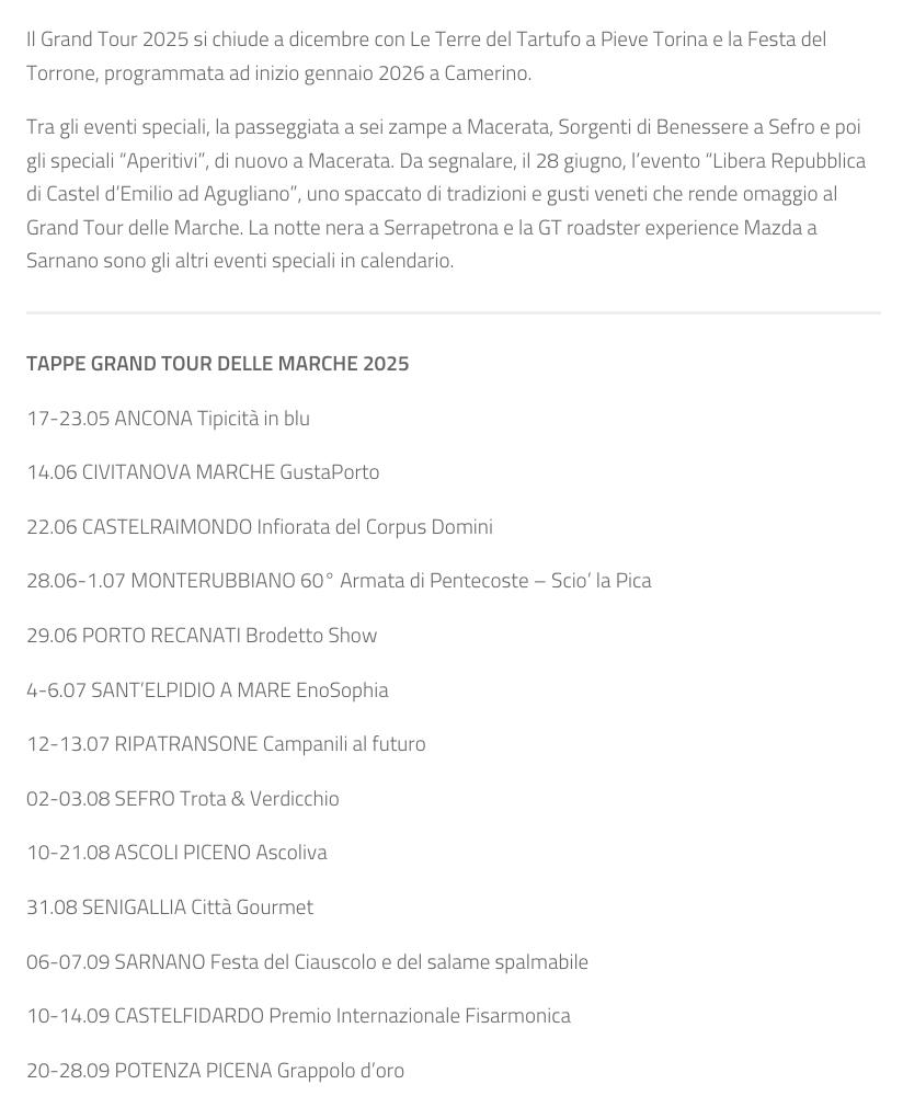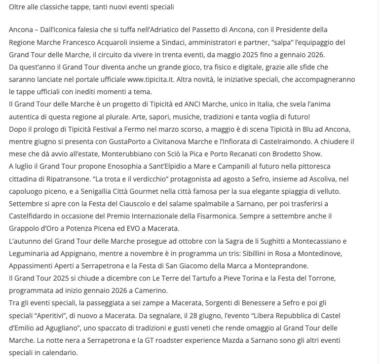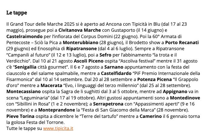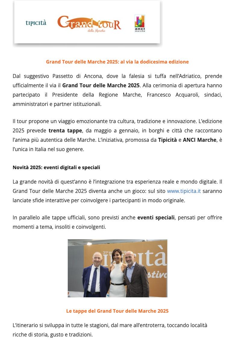 https://www.turismoitalianews.it/ultime/23889-marche-grand-tour-2025-al-via-varata-ufficialmente-l-edizione-n-12-oltre-alle-classiche-tappe-tanti-nuovi-eventi-speciali