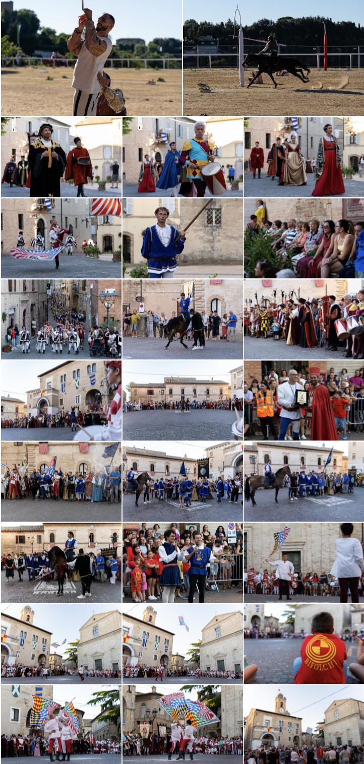 E così, da 60 edizioni, Monterubbiano festeggia il suo glorioso passato con questa celebrazione aperta da un corteo storico che impegna oltre 250 figuranti, tra musici, sbandieratori, dame, i cosiddetti “guazzarò”, i componenti delle quattro corporazioni cittadine (Artisti, Mulattieri, Bifolchi, Zappaterra) ed i rispettivi cavalieri che li rappresentano, che si sfidano nell’avvincente Giostra dell’Anello, vero e proprio catalizzatore della Festa che vede il Capitano d’Armata come figura centrale della solenne manifestazione.